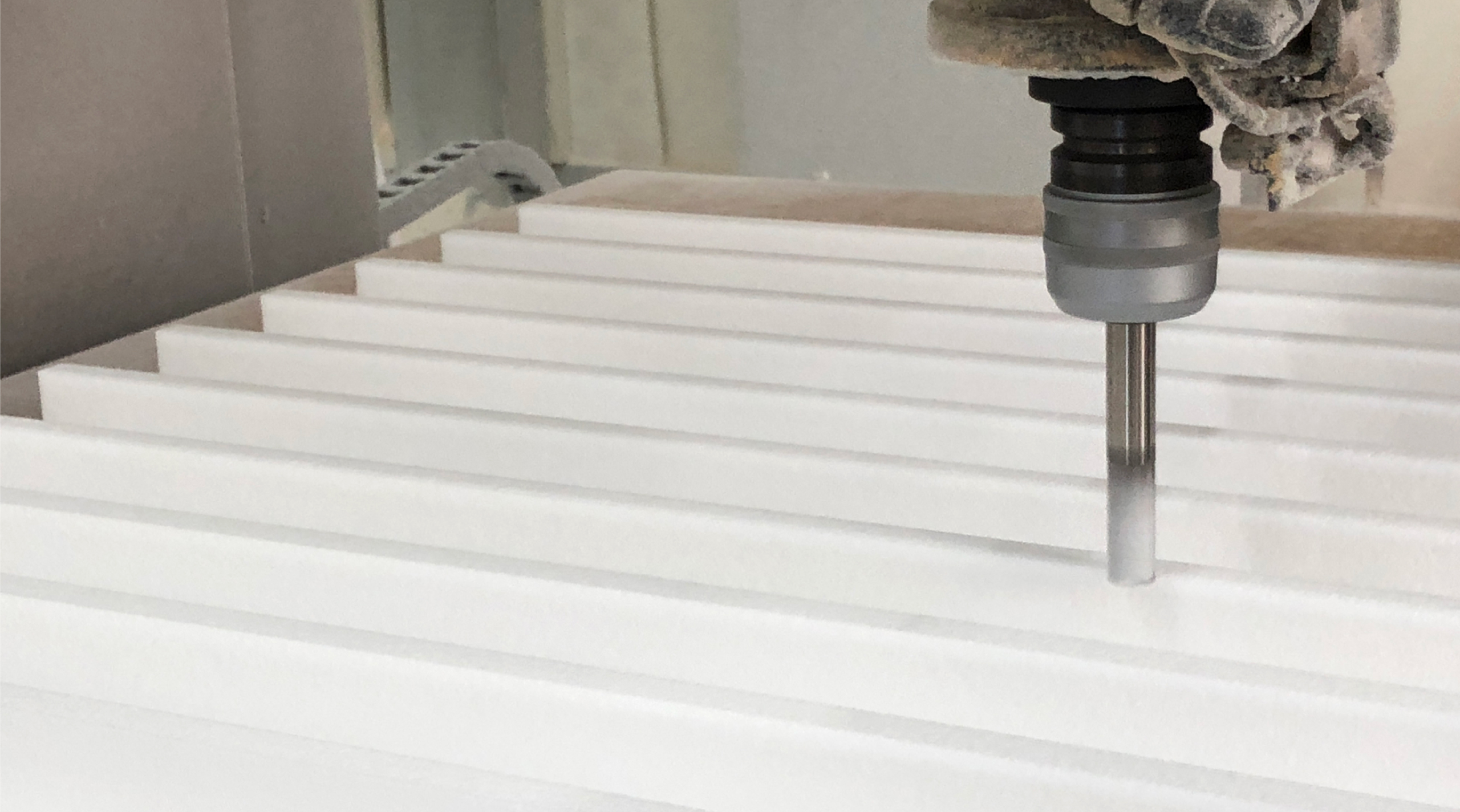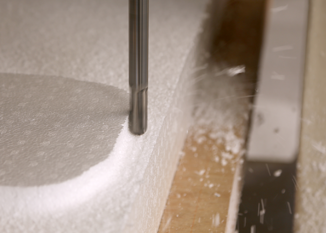 高松モデラでは4台のマシニングセンタで発泡スチロールを専門に切削、加工をしています。スチロールに合わせたセッティングやノウハウの蓄積で、短期間・高品質を実現します。